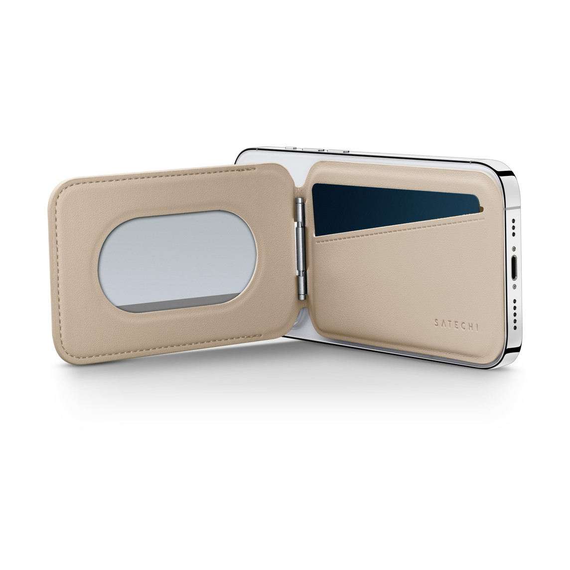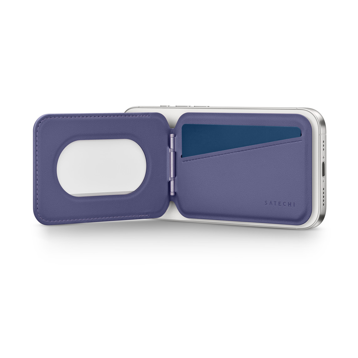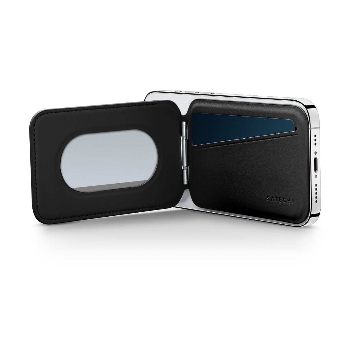 این نگهدارنده بهصورت کاملاً MagSafe‑سازگار طراحی شده و با آهنرباهای داخلی قدرتمند به پشت آیفونهای سری 12، 13، 14، 15 و همچنین مدلهای جدیدتر مانند آیفون 17 پرو و 17 پرو مکس متصل میشود. اتصال مغناطیسی Satechi باعث میشود کیف بدون جدا شدن ناگهانی روی گوشی قرار گیرد و نگهداری مطمئن کارتهای شما را فراهم کند.